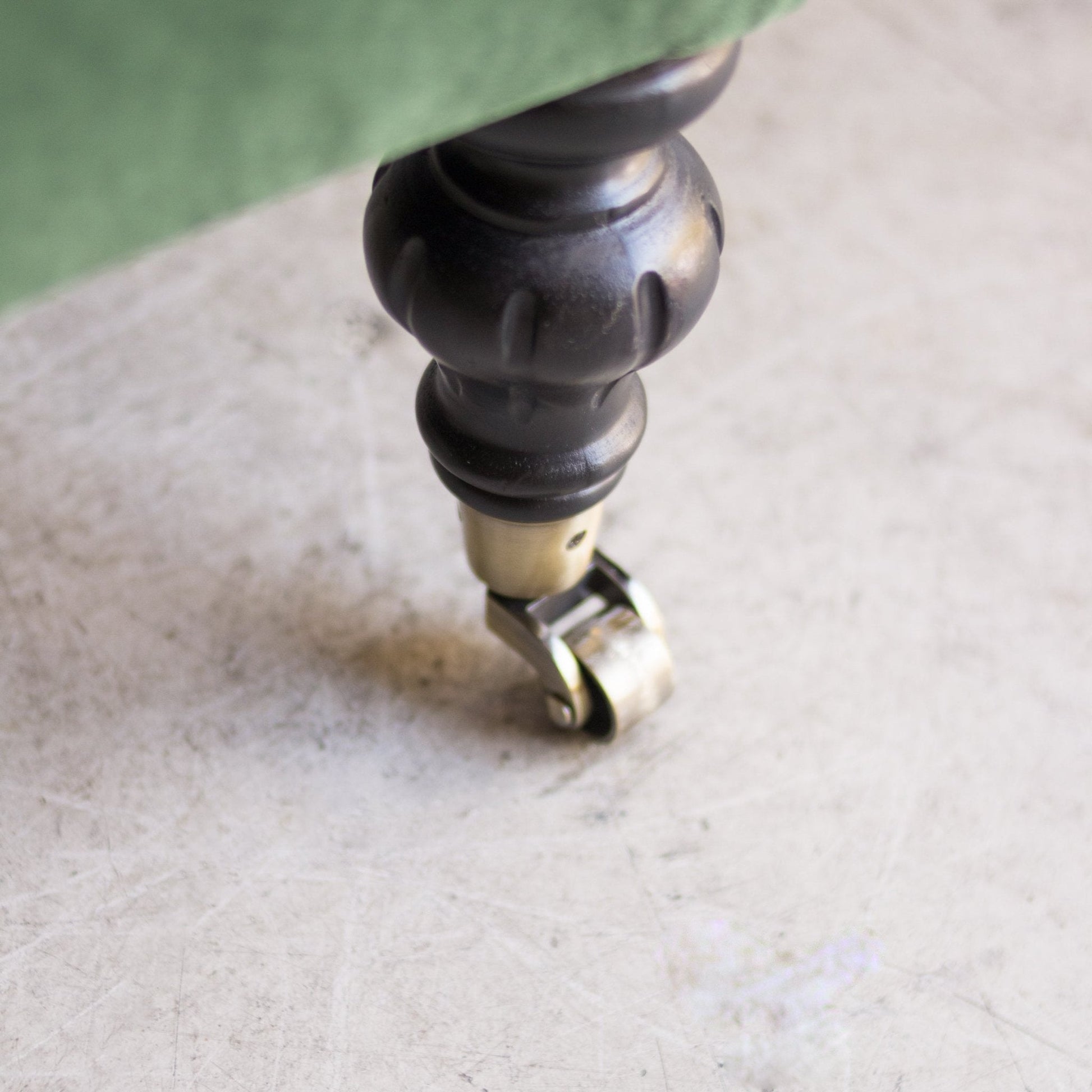 - Les pieds ont la conception traditionnelle de pieds arrière droits et de jolis pieds avant décoratifs avec des roulettes d'inspiration vintage.