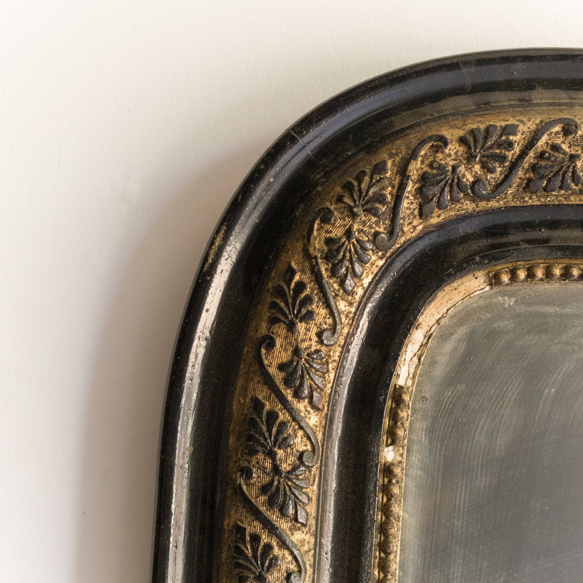 - Miroir vintage en verre avec vieillissement naturel appelé foxing.