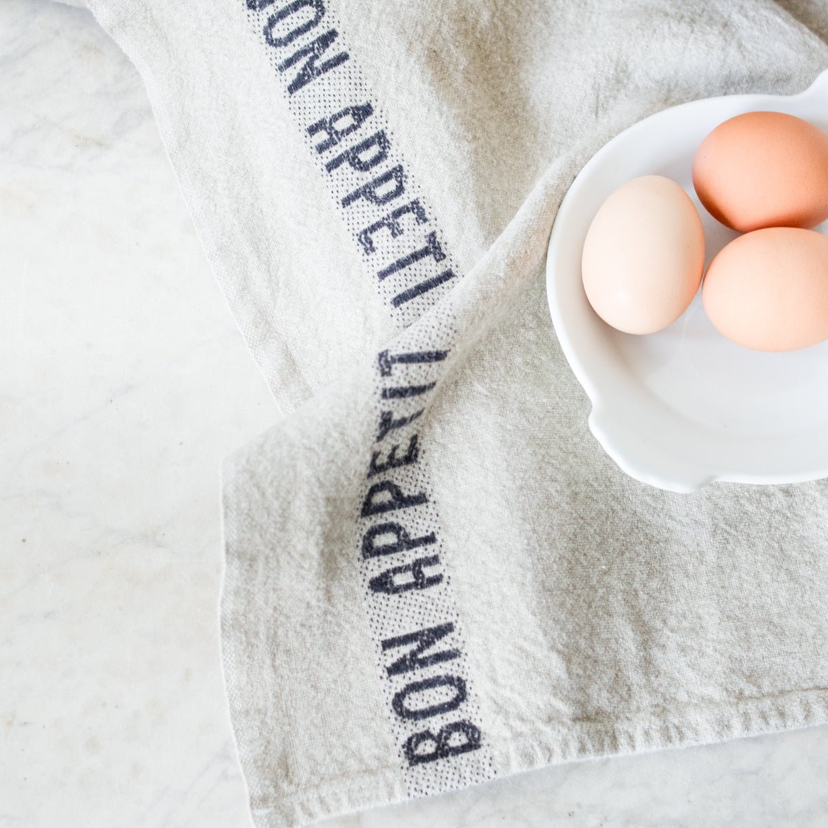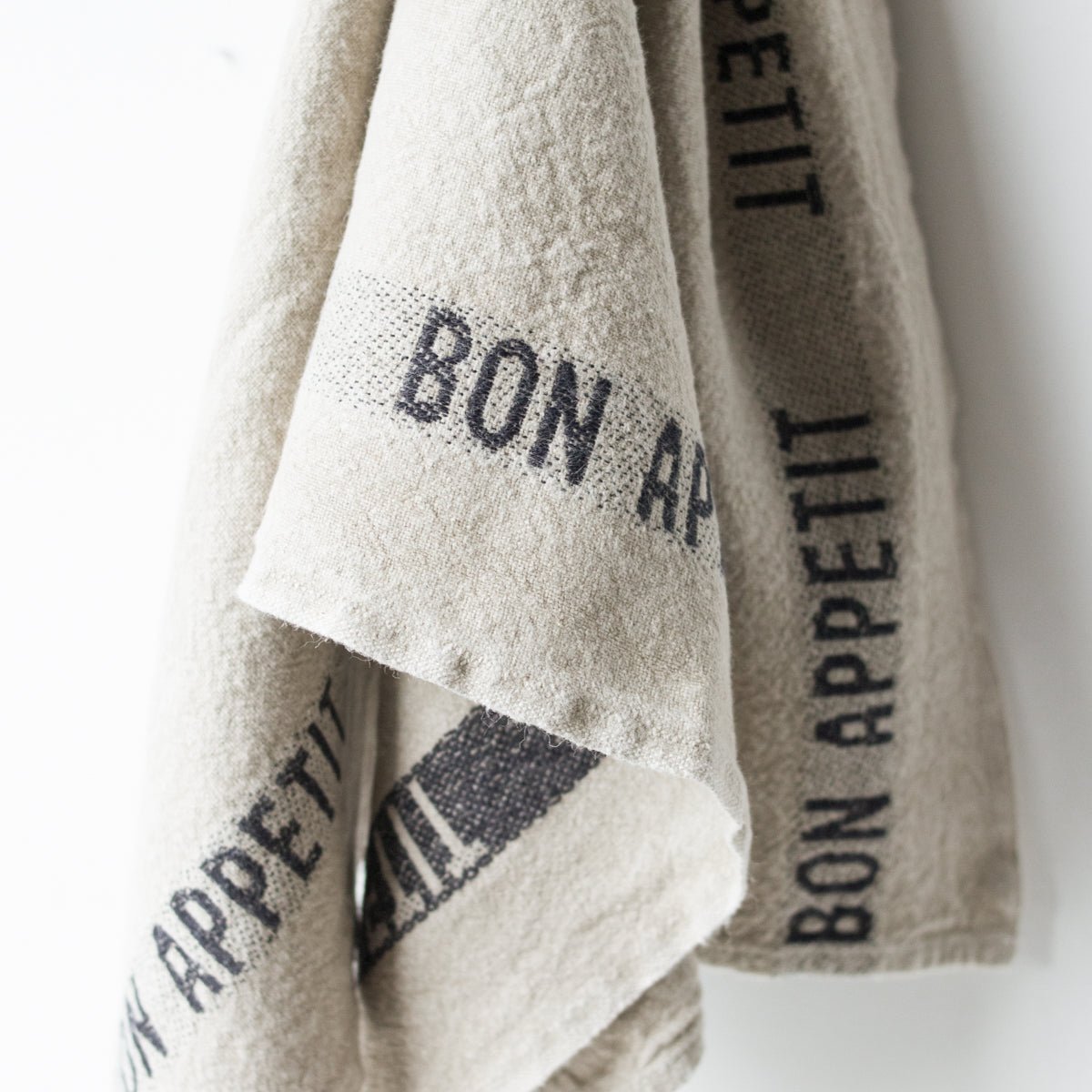 PAIRE DE TORCHONS DE CUISINE BON APPETIT | LIN ET NOIR