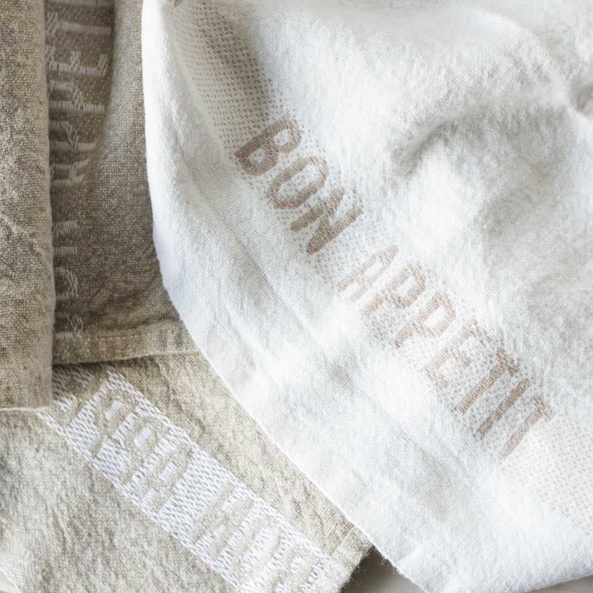 PAIRE DE TORCHONS DE CUISINE BON APPETIT | BLANC ET NATUREL
