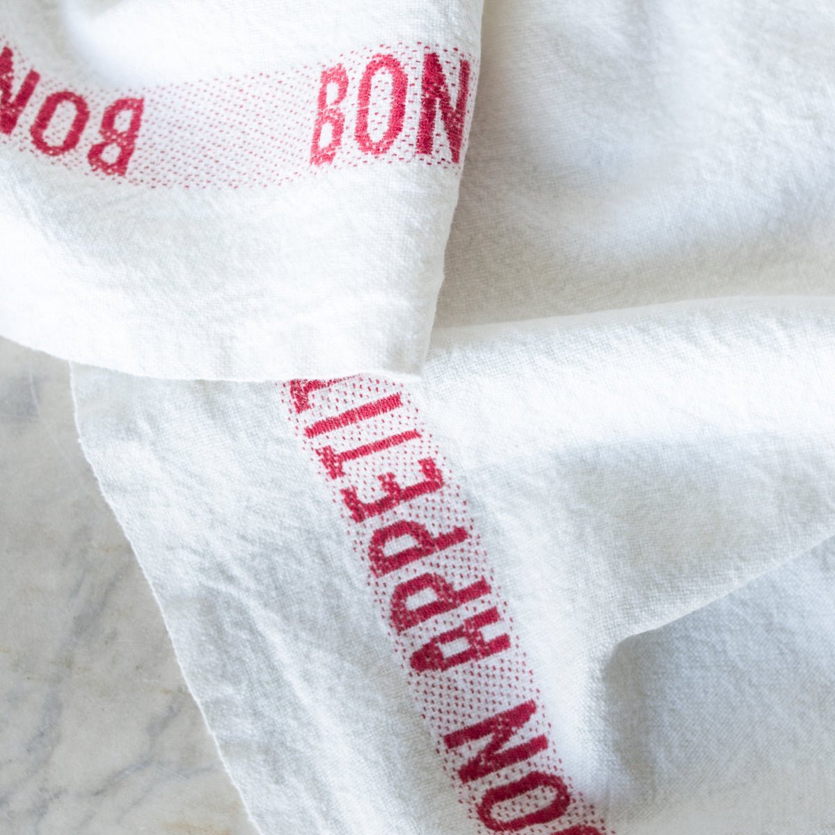 PAIRE DE TORCHONS DE CUISINE BON APPETIT | BLANC ET ROUGE